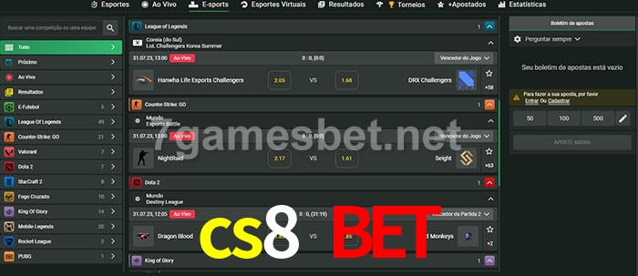 O cs8 bet oferece uma grande seleção de opções de apostas em e-sports com probabilidades competitivas